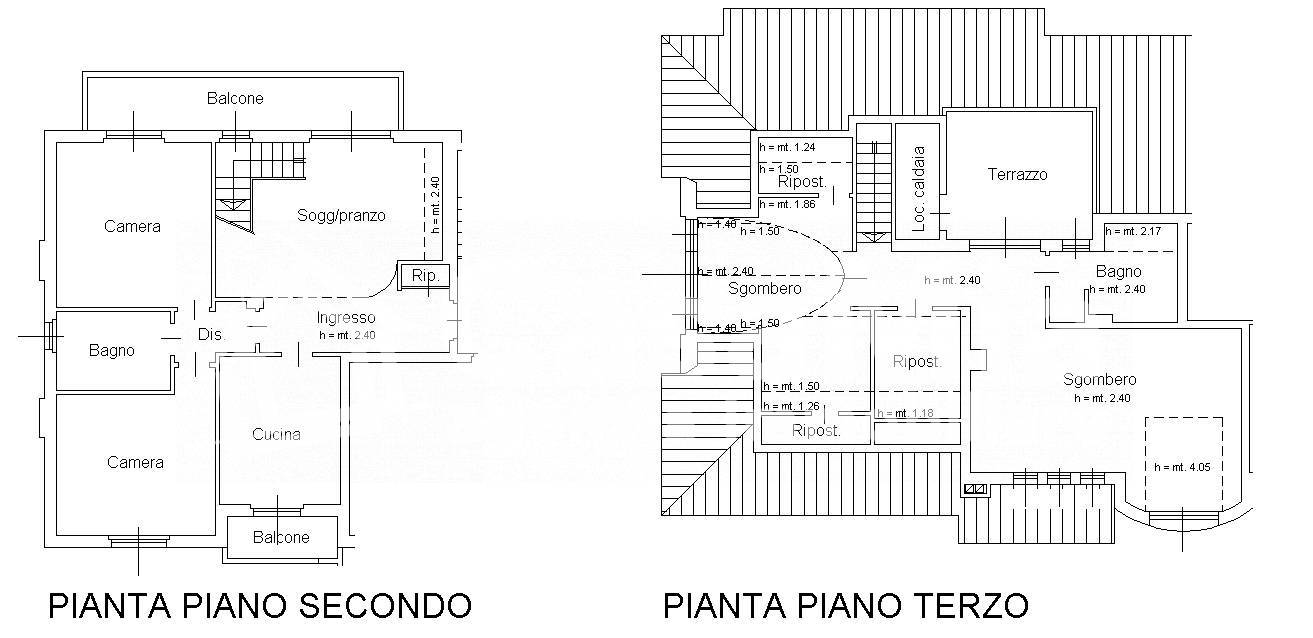 Il piano mansardato, presenta una terza camera attrezzata da due vani ripostiglio, un ampio e luminosissimo secondo soggiorno impreziosito da un terrazzo da cui è possibile godere di una vista panoramica sulla città e sul verde circostante, un locale guardaroba/cabina armadio ed un secondo bagno anch'esso finestrato.