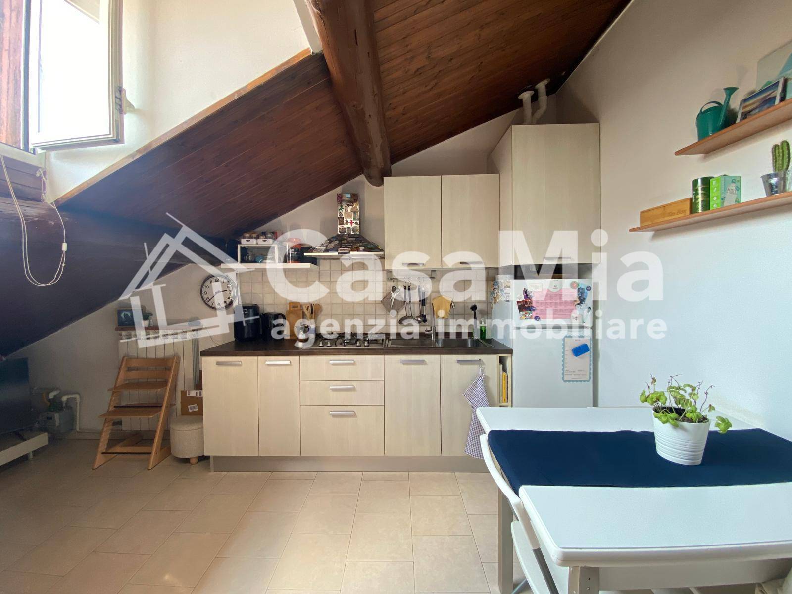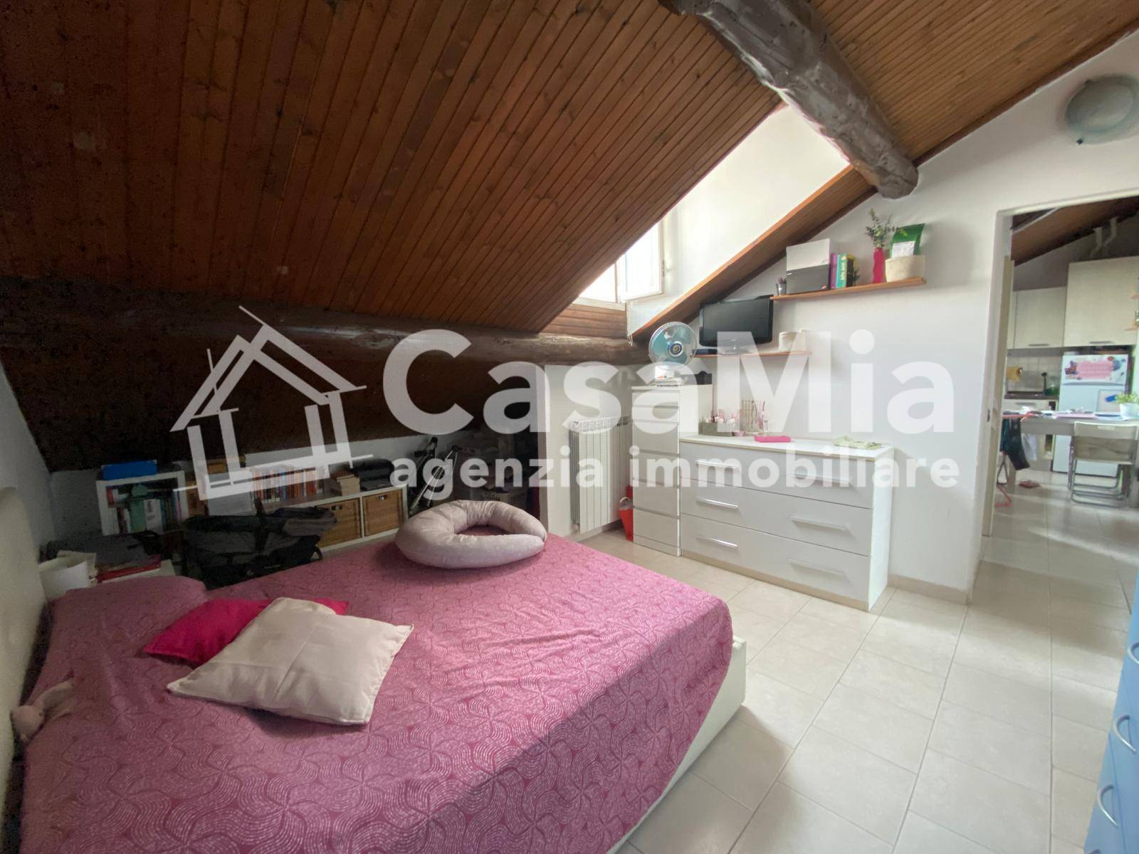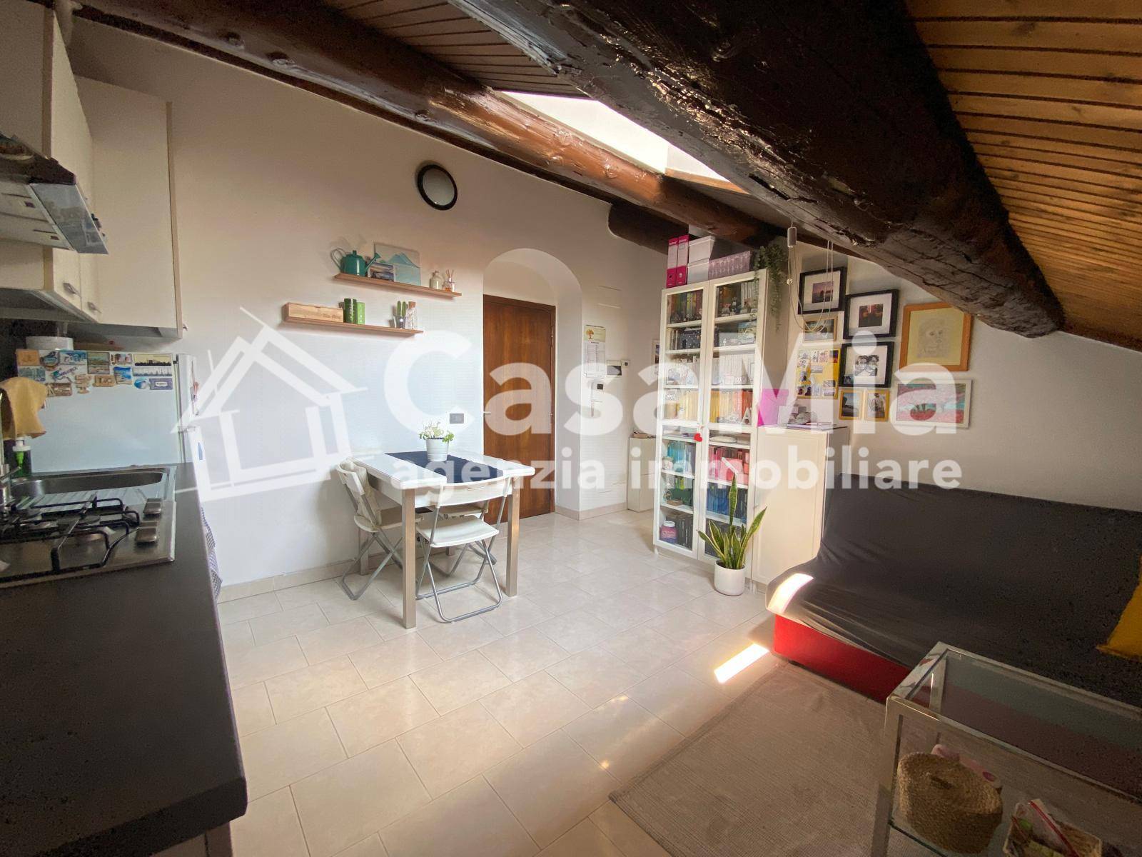 La mansarda è costituita dall'ingresso affacciato al soggiorno con cucina a vista, disimpegno, bagno con doccia e camera matrimoniale, nella parte più bassa della falda del tetto, si dispongono, lungo il perimetro dell'abitazione, dei comodi ripostigli.