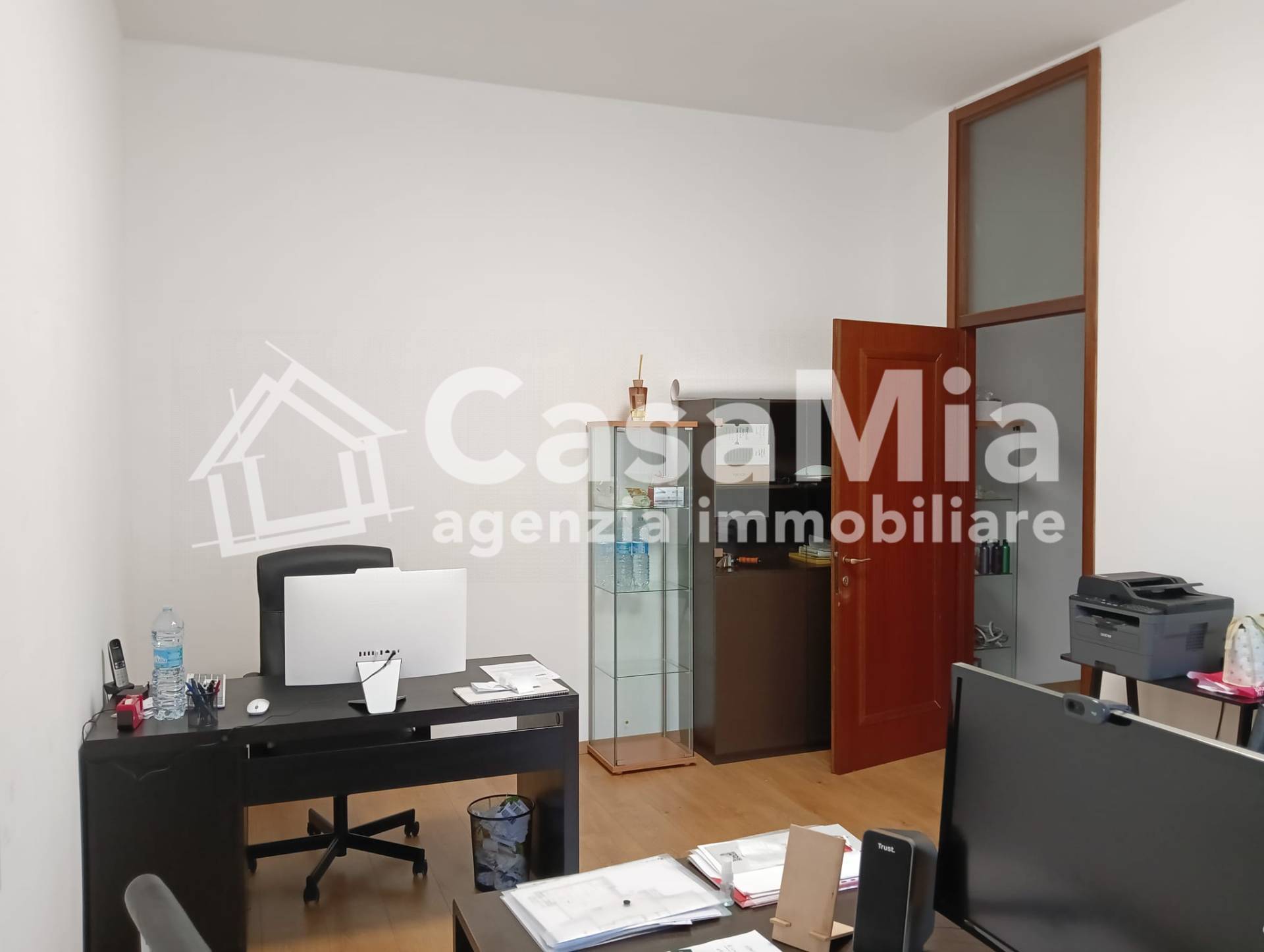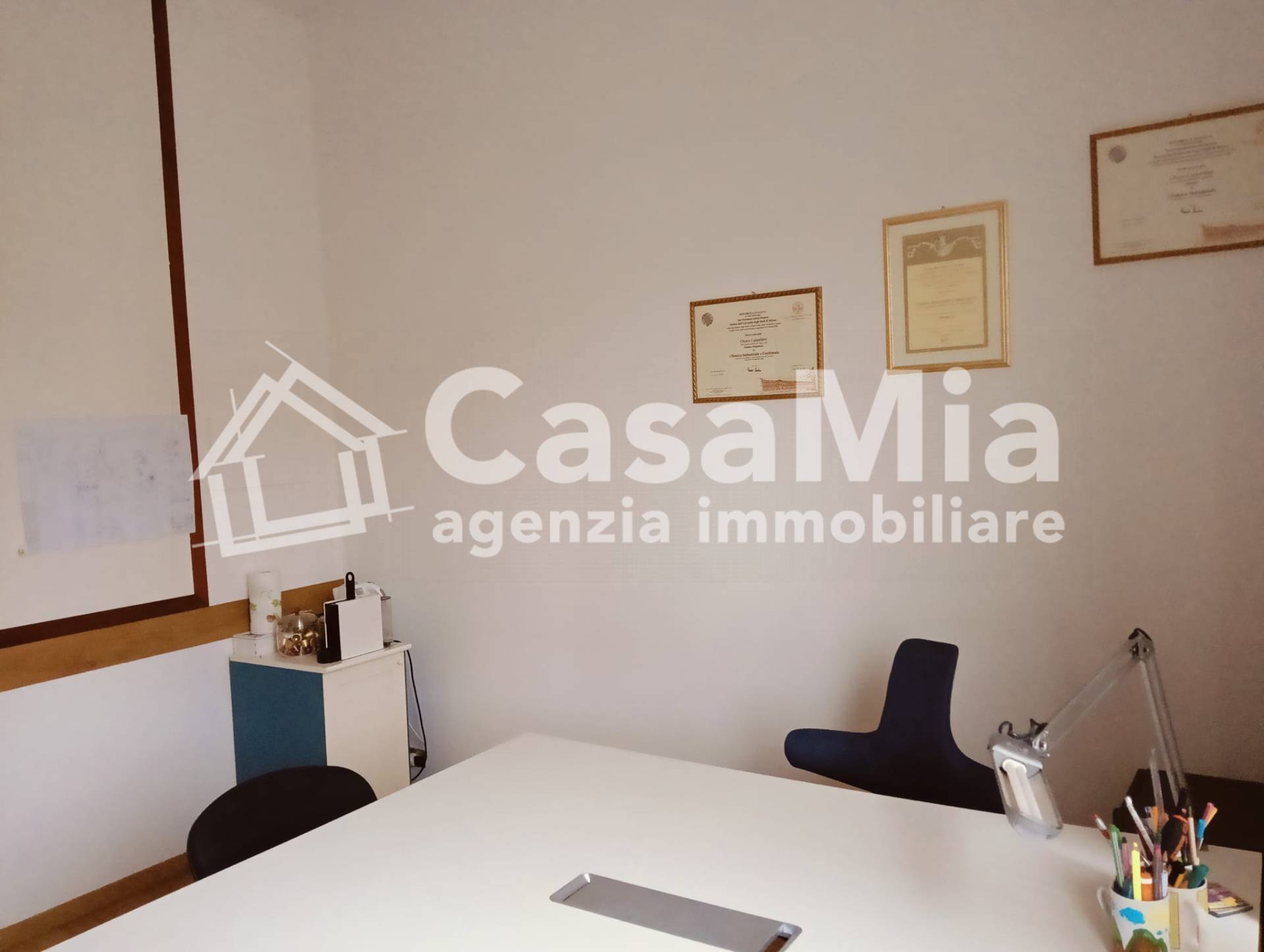 L'unità immobiliare, posta al piano rialzato, è dotata d'ingresso con porta blindata, utilizzabile anche come piccola sala d'attesa per il pubblico, due stanze ad uso ufficio di cui quella disponibile misura 20 metri-quadrati circa oltre ad un antibagno con arredo lavabo e bagno con wc.