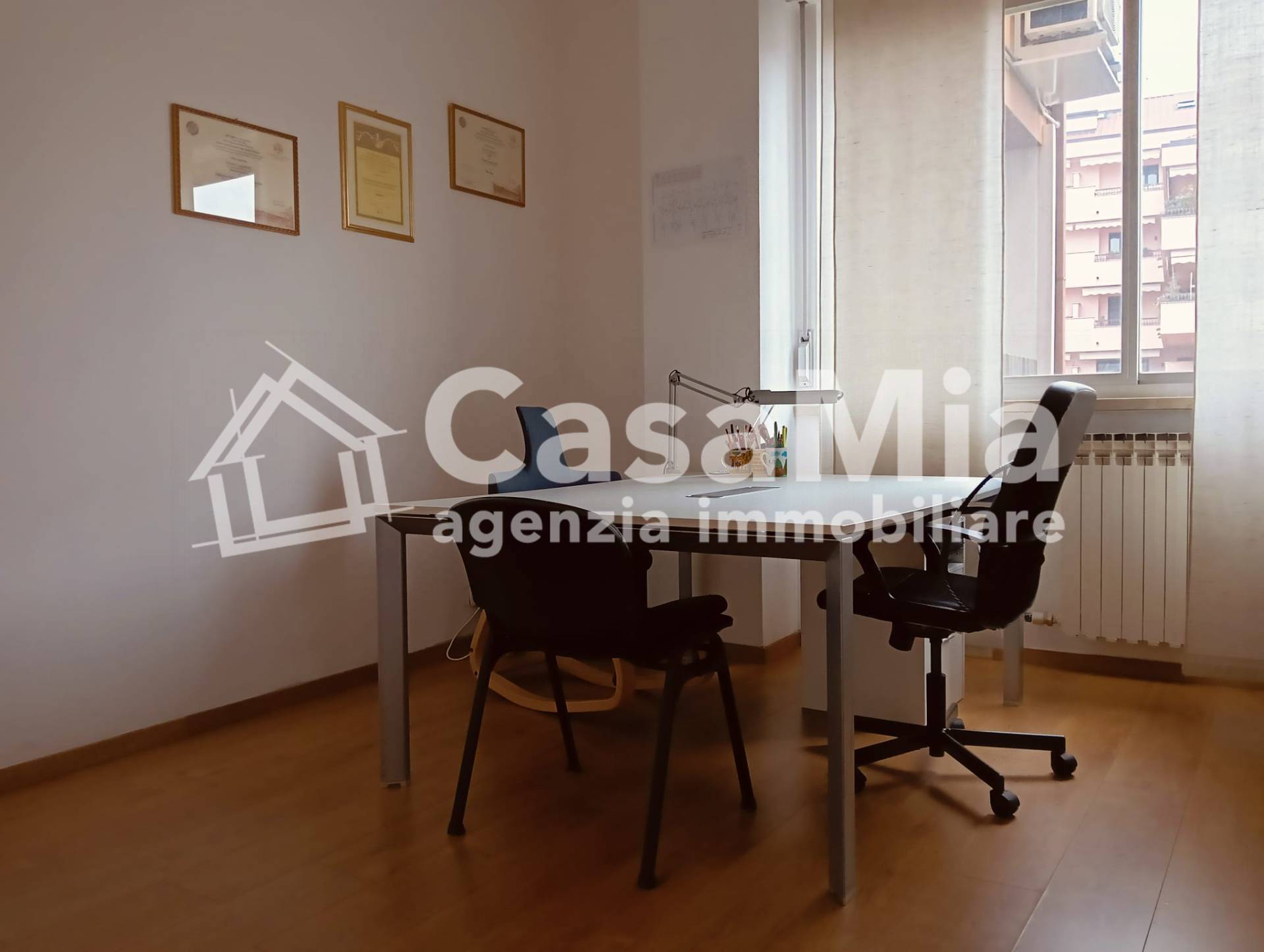 L'ufficio gode di riscaldamento autonomo a radiatori, è dotato di impianto di condizionamento con pompe di calore inverter in ogni singola stanza, di videocitofono ed è completamente pavimentato in parquet a listoni. Sarà disponibile dalla metà del mese di febbraio 2026. Possibilità posto ad auto ad € 50,00 mensili.
