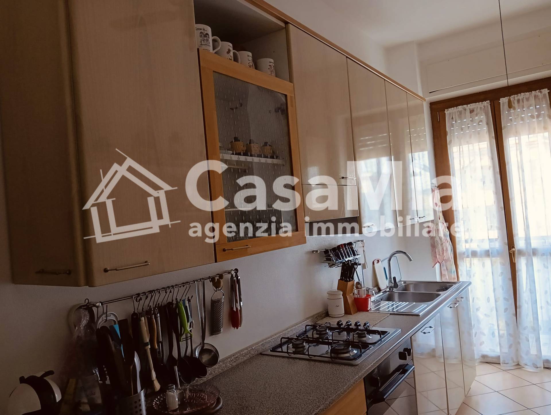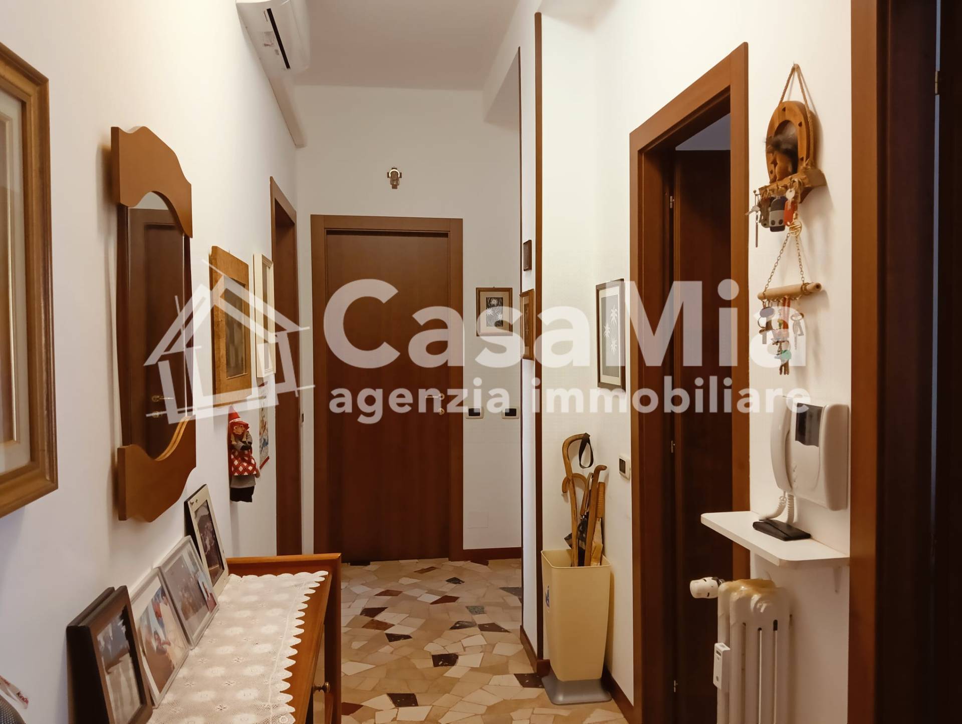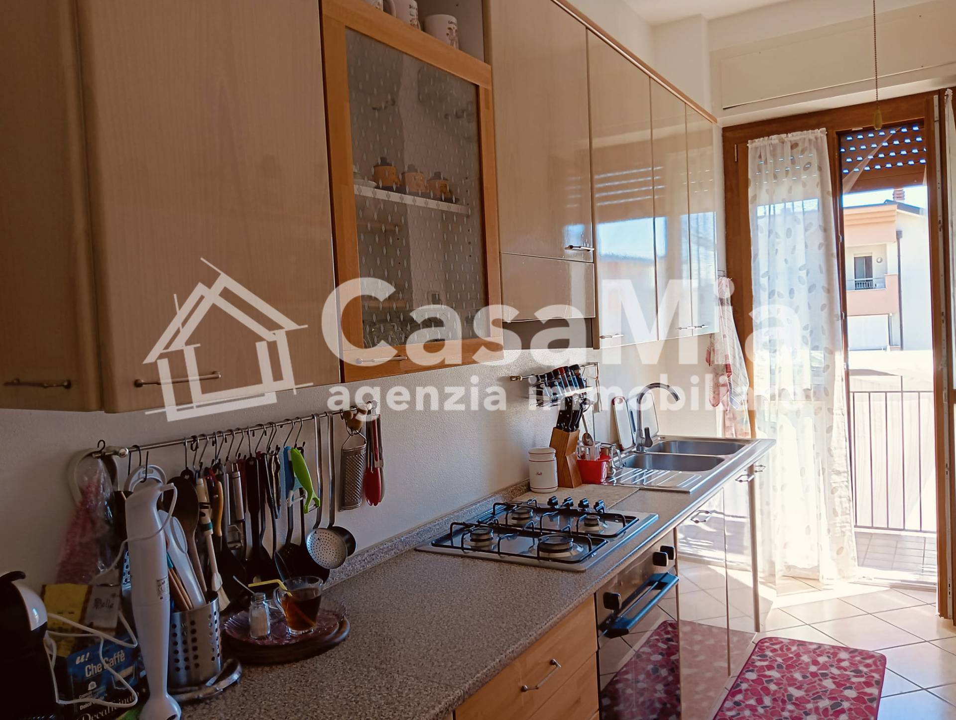 Il disimpegno d'ingresso, servito da porta blindata, conduce al primo ambiente, la cucina, abitabile, con balcone e anch'essa ristrutturata nelle sue finiture e impianti elettrico ed idraulico. Affiancato ad essa il bagno, completo di tutti i sanitari, doccia e attacchi per la lavatrice, a seguire un ampio soggiorno con balcone, di fronte, la camera matrimoniale di generosa metratura ed un comodo ripostiglio nella parte terminale del disimpegno.