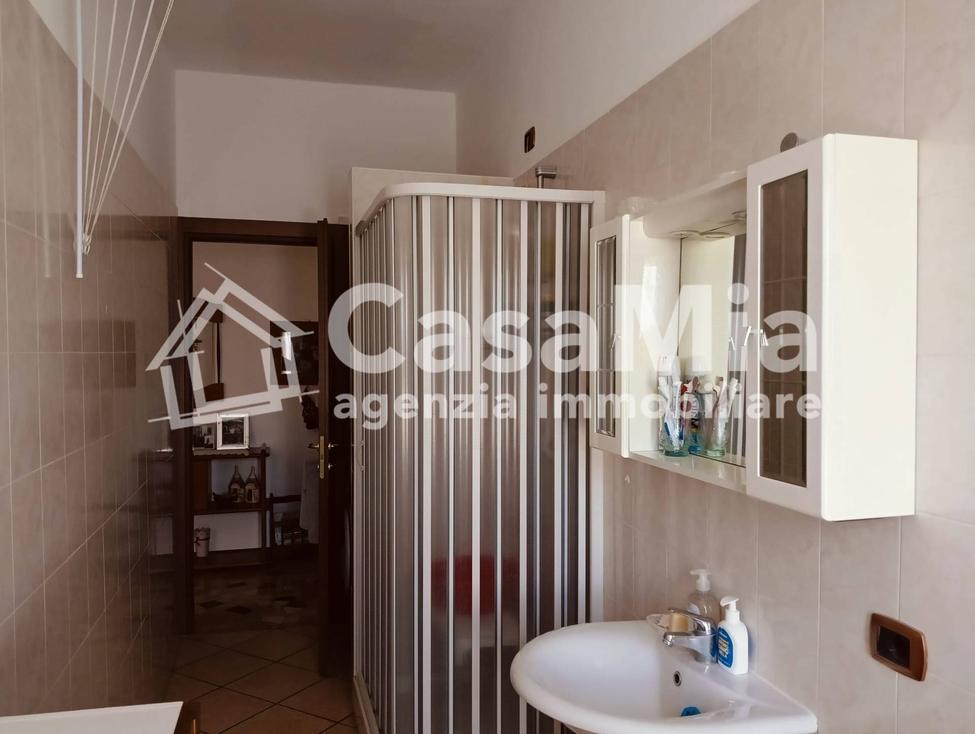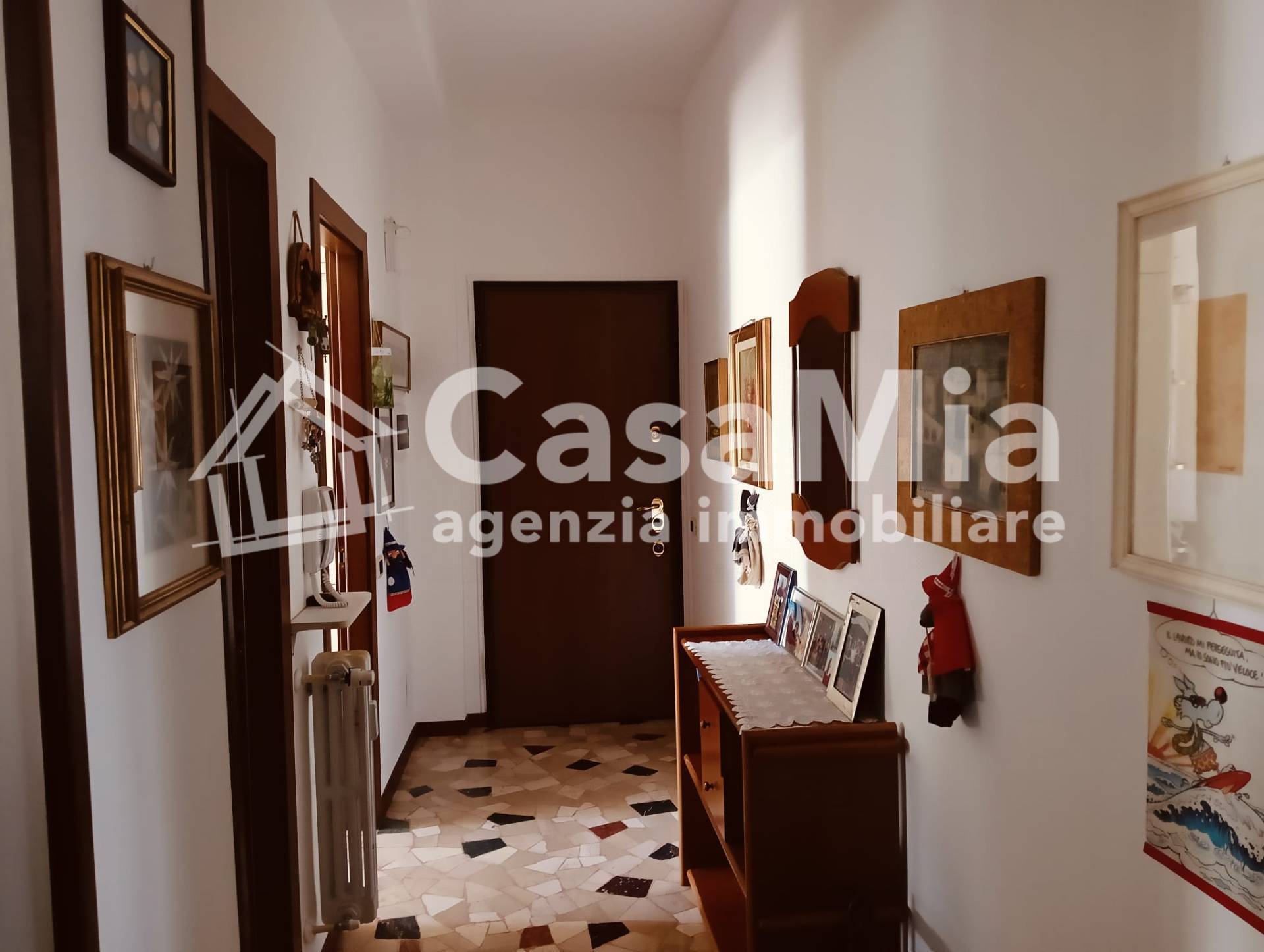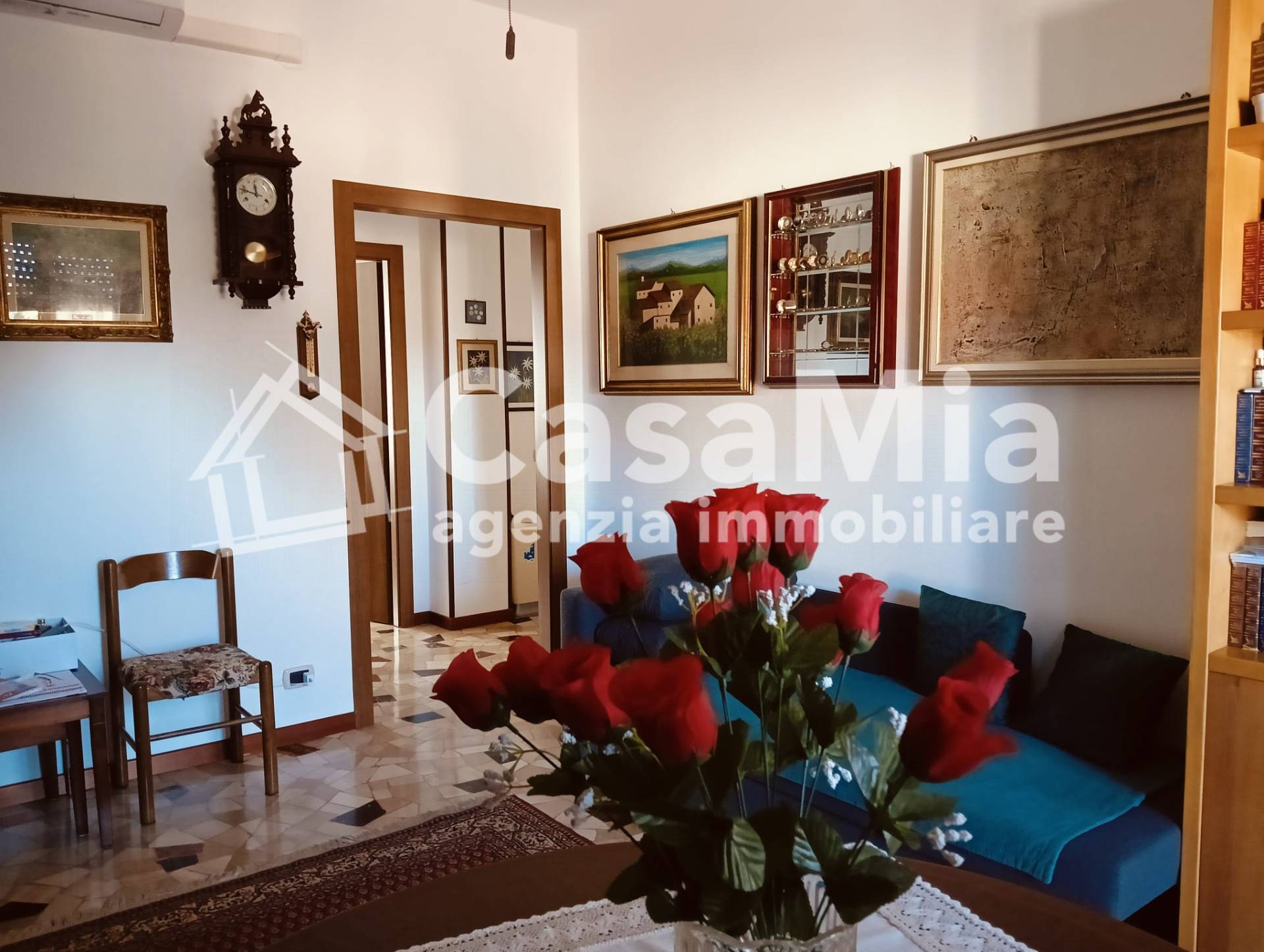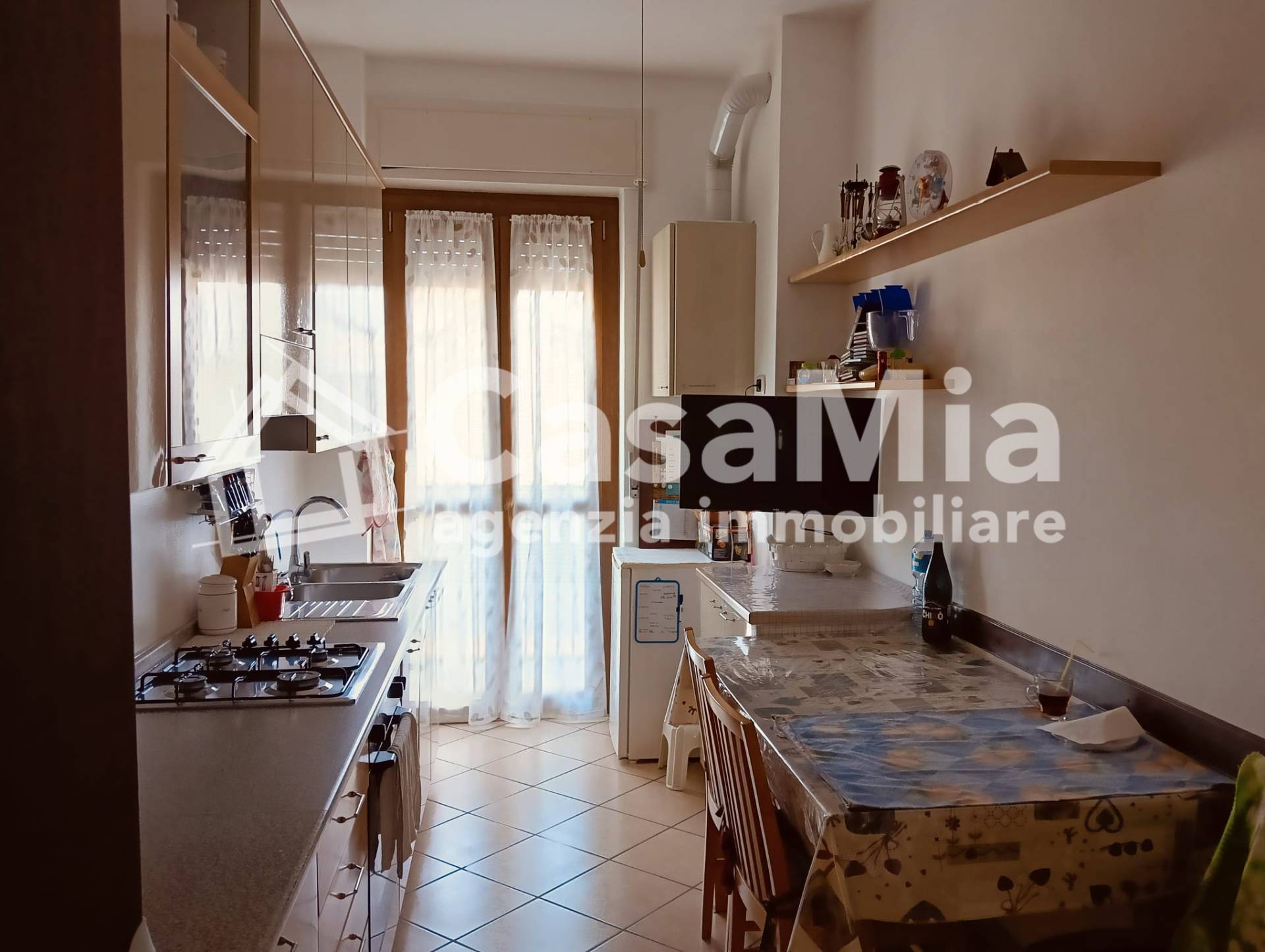 Il disimpegno d'ingresso, servito da porta blindata, conduce al primo ambiente, la cucina, abitabile, con balcone e anch'essa ristrutturata nelle sue finiture e impianti elettrico ed idraulico. Affiancato ad essa il bagno, completo di tutti i sanitari, doccia e attacchi per la lavatrice, a seguire un ampio soggiorno con balcone, di fronte, la camera matrimoniale di generosa metratura ed un comodo ripostiglio nella parte terminale del disimpegno.